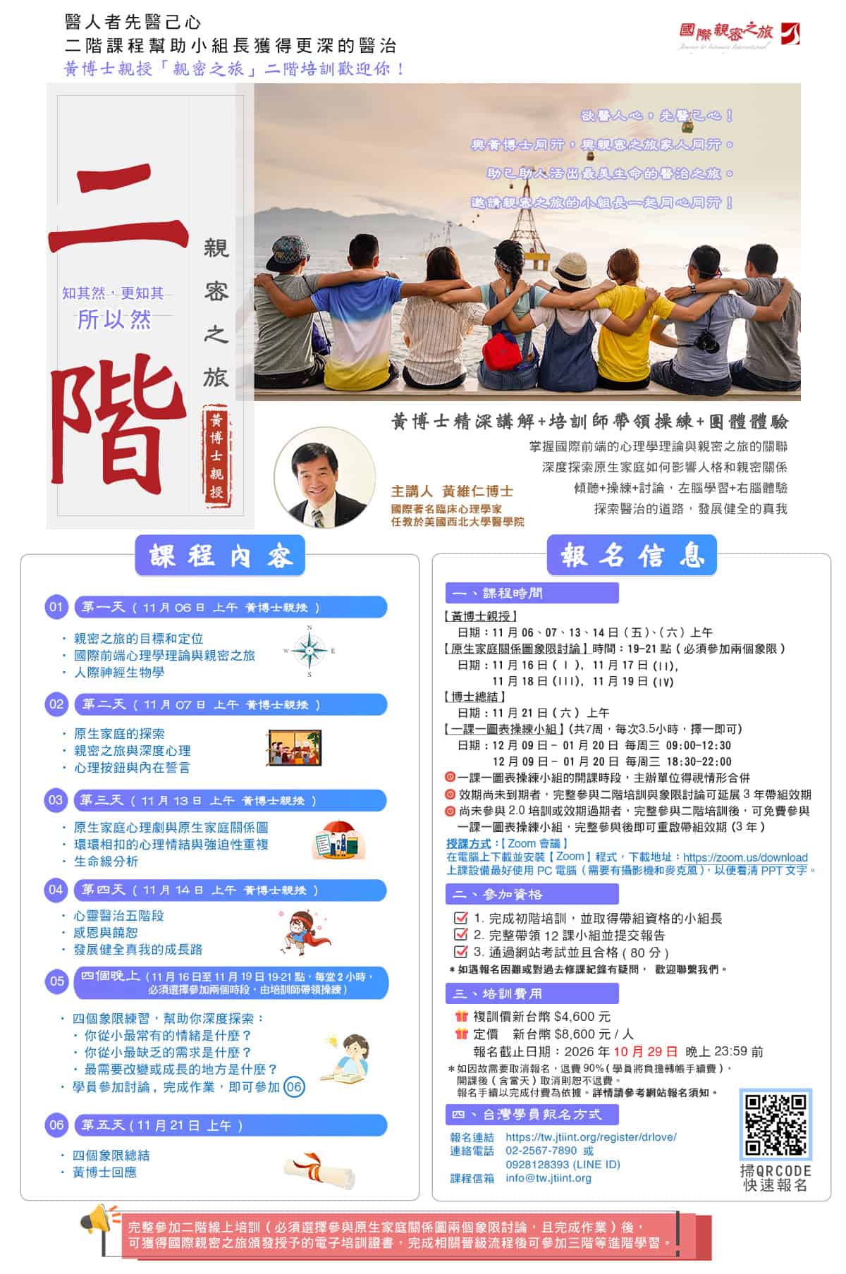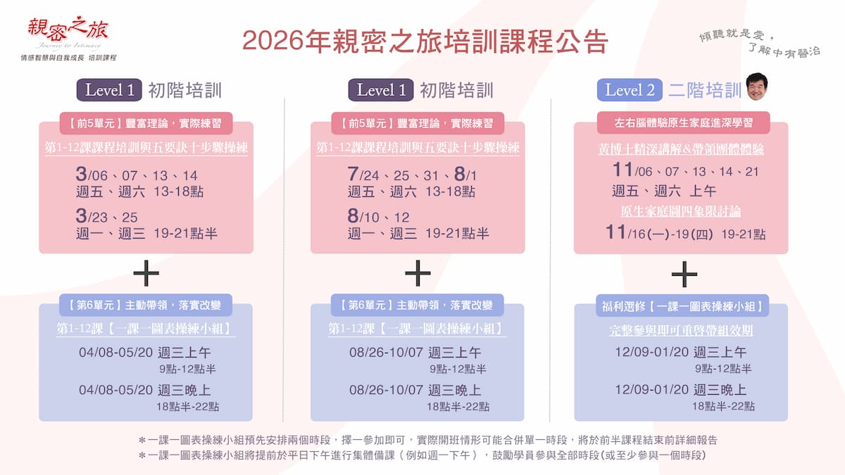 報名即將上線,歡迎預留時間參加2026年親密之旅二階培訓